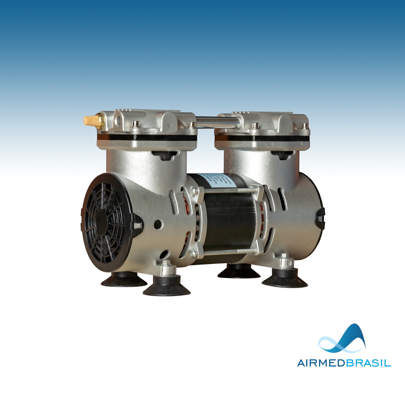 Bomba de pressão construída em alumínio injetado, com pistões totalmente isentos de óleos, anéis em PTFE que produzem baixíssimos níveis de ruído e com protetor térmico de sobreaquecimento.
