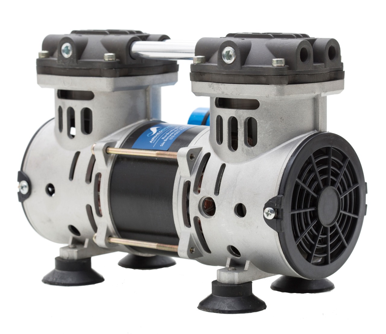 Bomba de alto vácuo construída em alumínio injetado, com pistões totalmente isentos de óleos e com anéis em PTFE que produzem baixíssimos níveis de ruído com protetor térmico de sobreaquecimento.